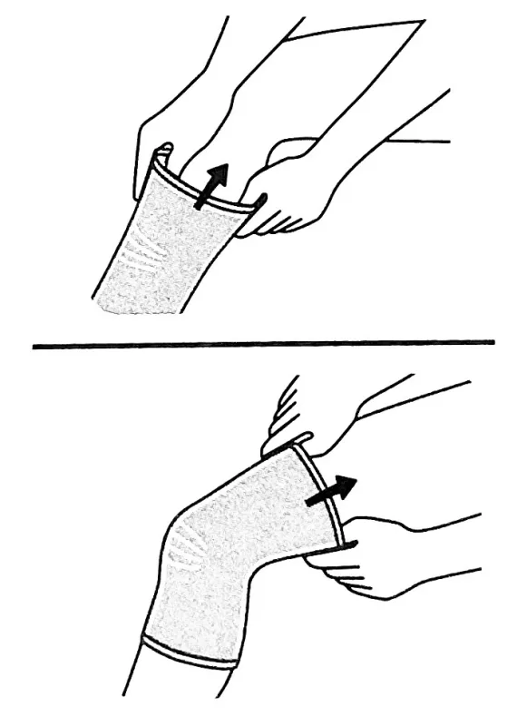 สวมอุปกรณ์พยุงหัวเข่า ฟูทูโร่ เข้าทางด้านที่กว้างกว่า โดยให้แถบยืดหยุ่นพิเศษคลุมบริเวณหัวเข่าเพื่อความสบาย สามารถใช้ได้ทั้งข้างซ้ายและขวา